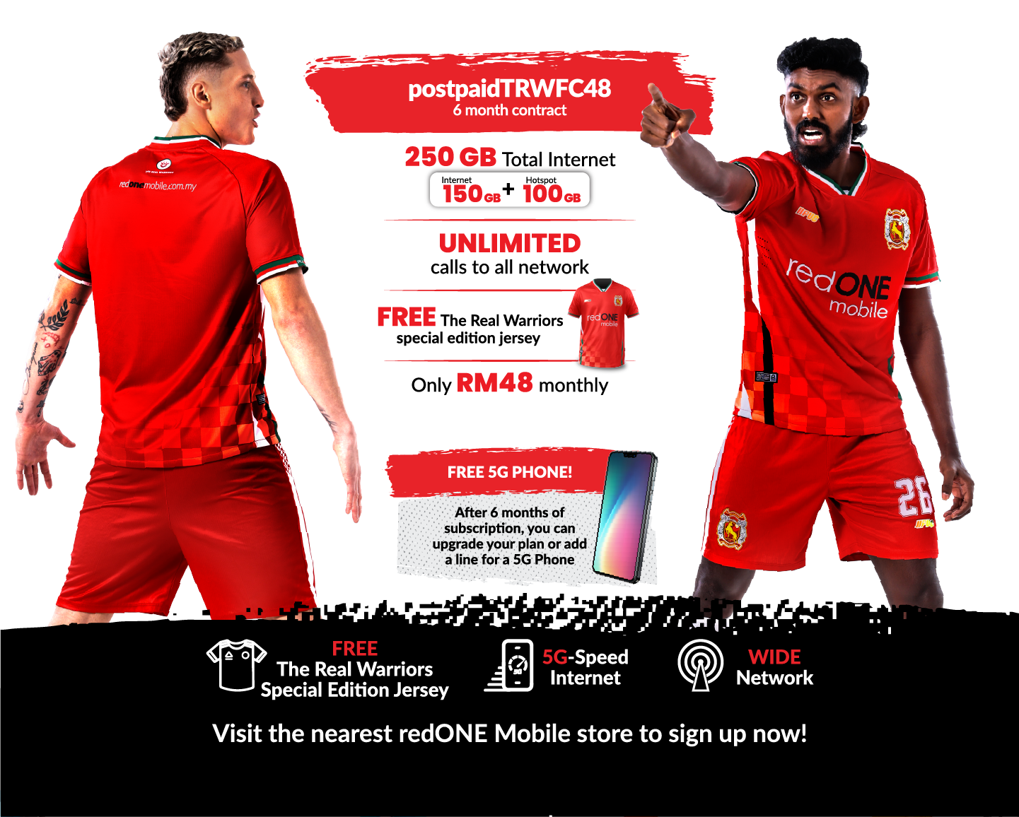 1. Get your FREE TRW FC Home jersey when you subscribe to the postpaid TRWFC48 plan at only RM48.