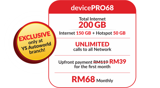Switch to redONE Postpaid devicePRO68 and renew your insurance at YS Autoworld for a FREE smartphone now!