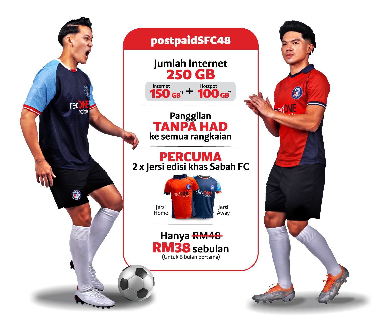 Dapatkan jersi edisi khas Sabah FC PERCUMA apabila anda melanggan pelan postpaidSFC48 baharu hanya pada RM48 sebulan dan menikmati rebat bil RM10 untuk 6 bulan!